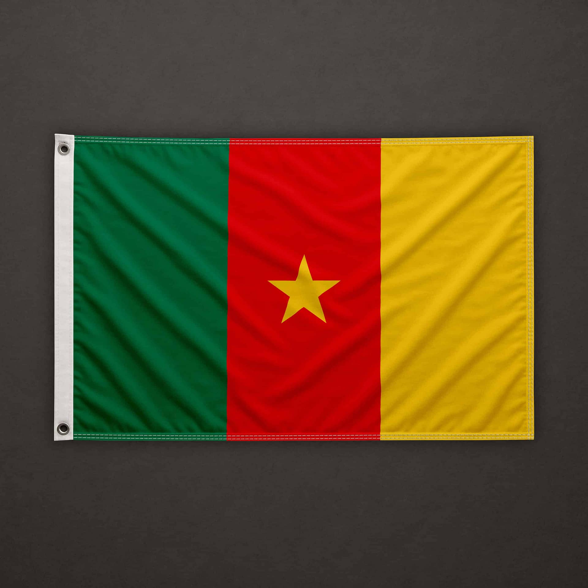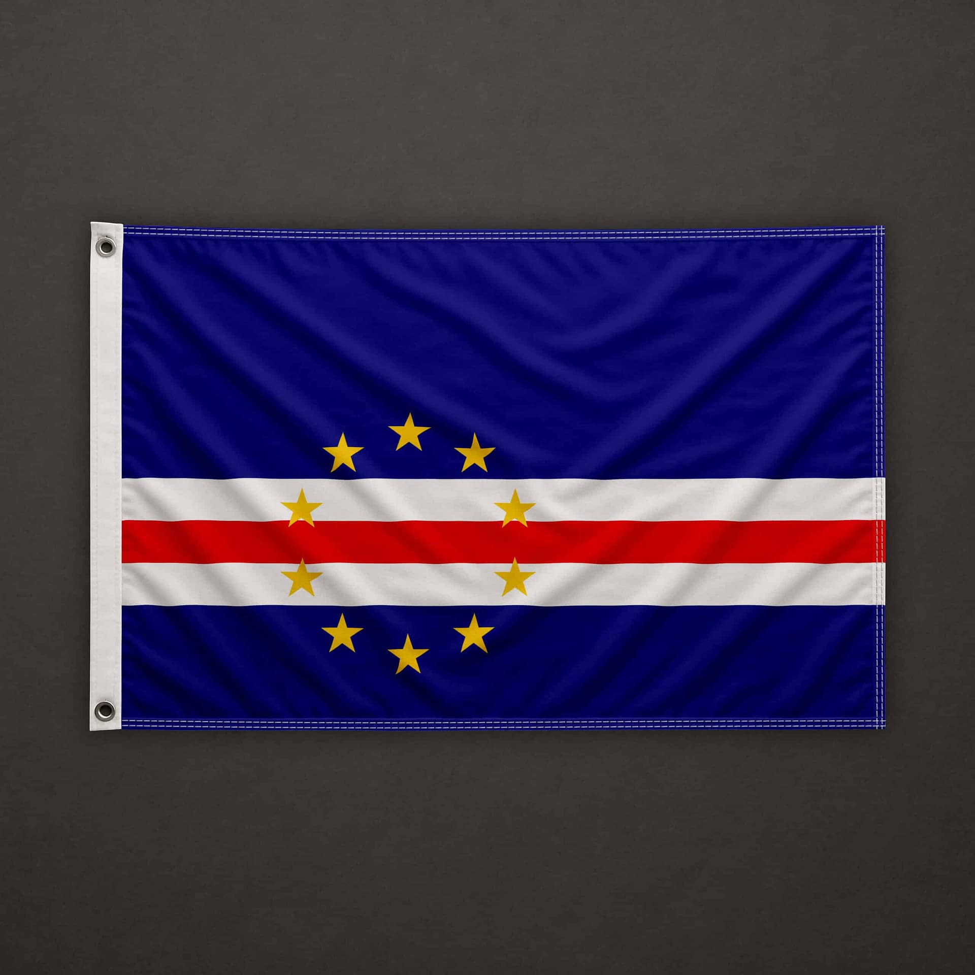 On the left side (hoist edge), a pocket for 6mm stick, open at the top and at the bottom. The top, bottom, and right sides are clean cut (hot cut). The flag is equipped with a 6mm stick already installed, 40cm long.