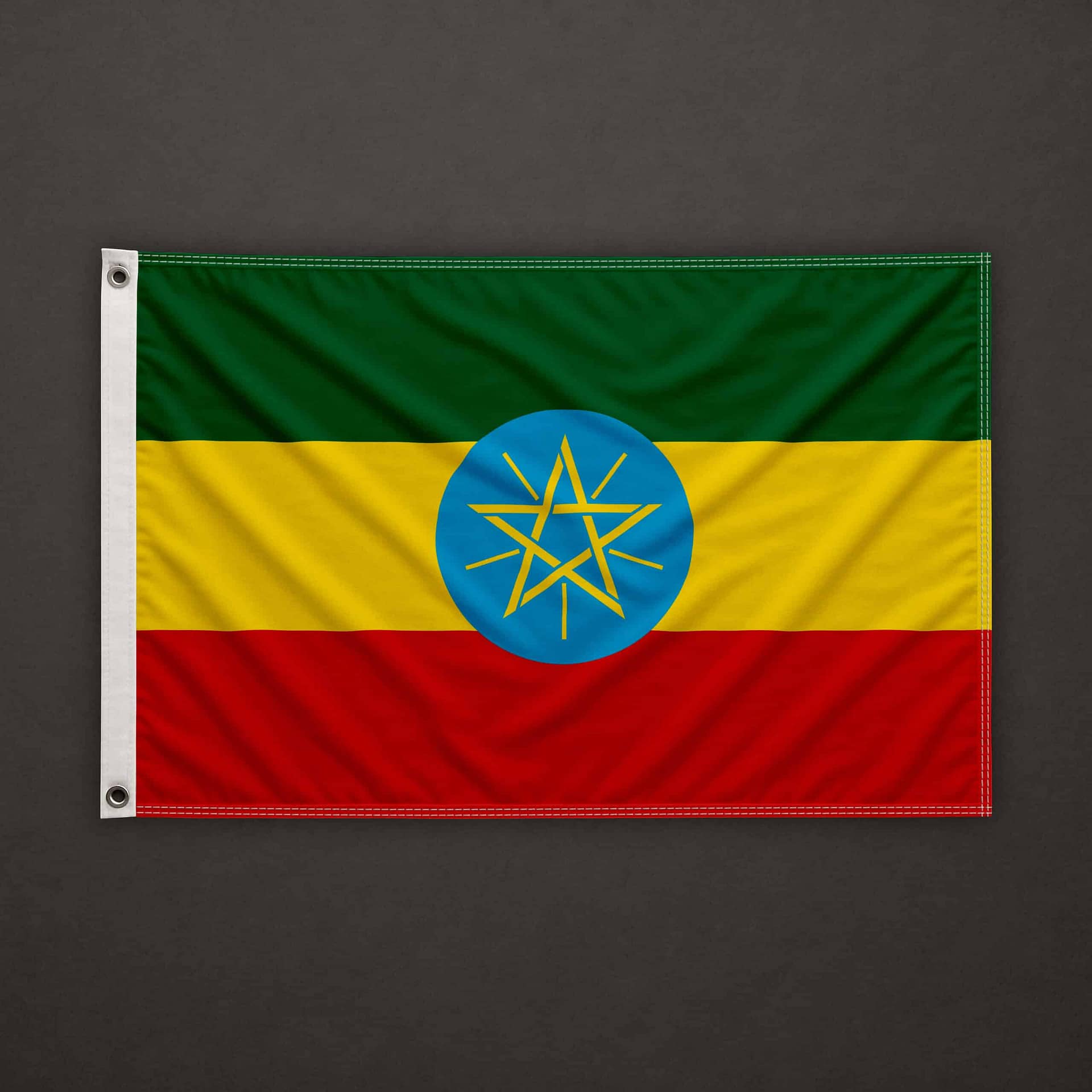 All the sides have double perimeter hems with double stitching.On the left (hoist edge) side two double ribbons are sewn onto the perimeter hem.
