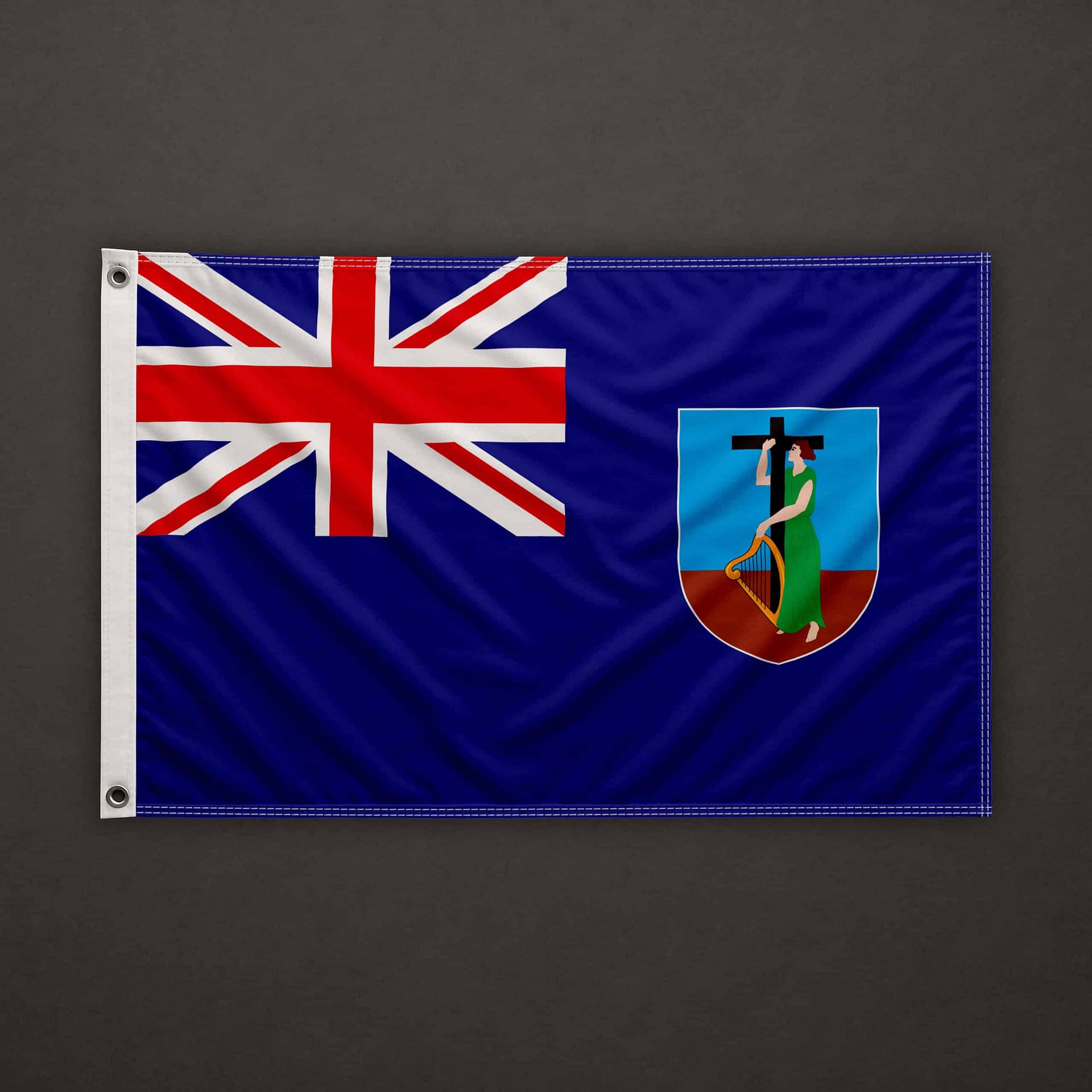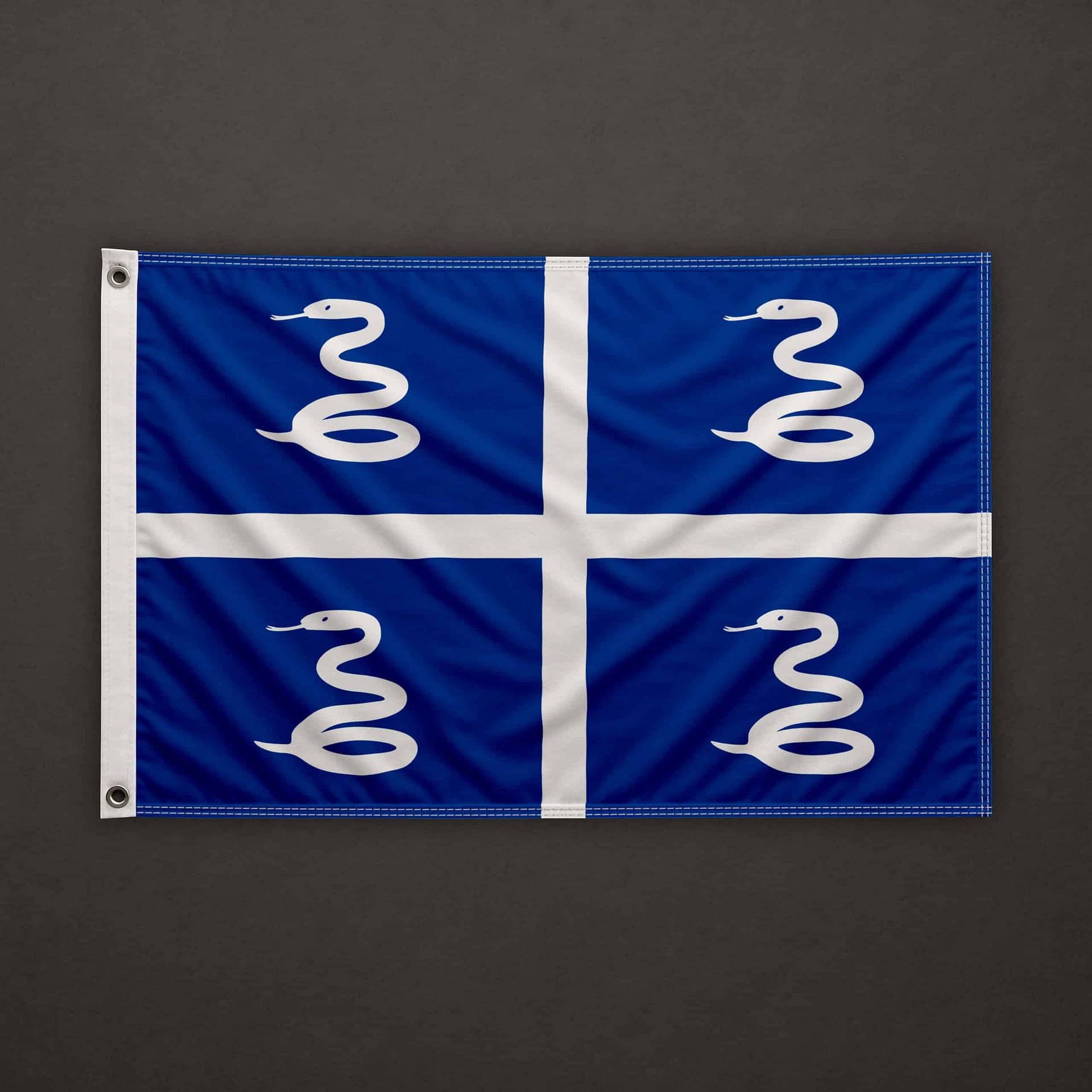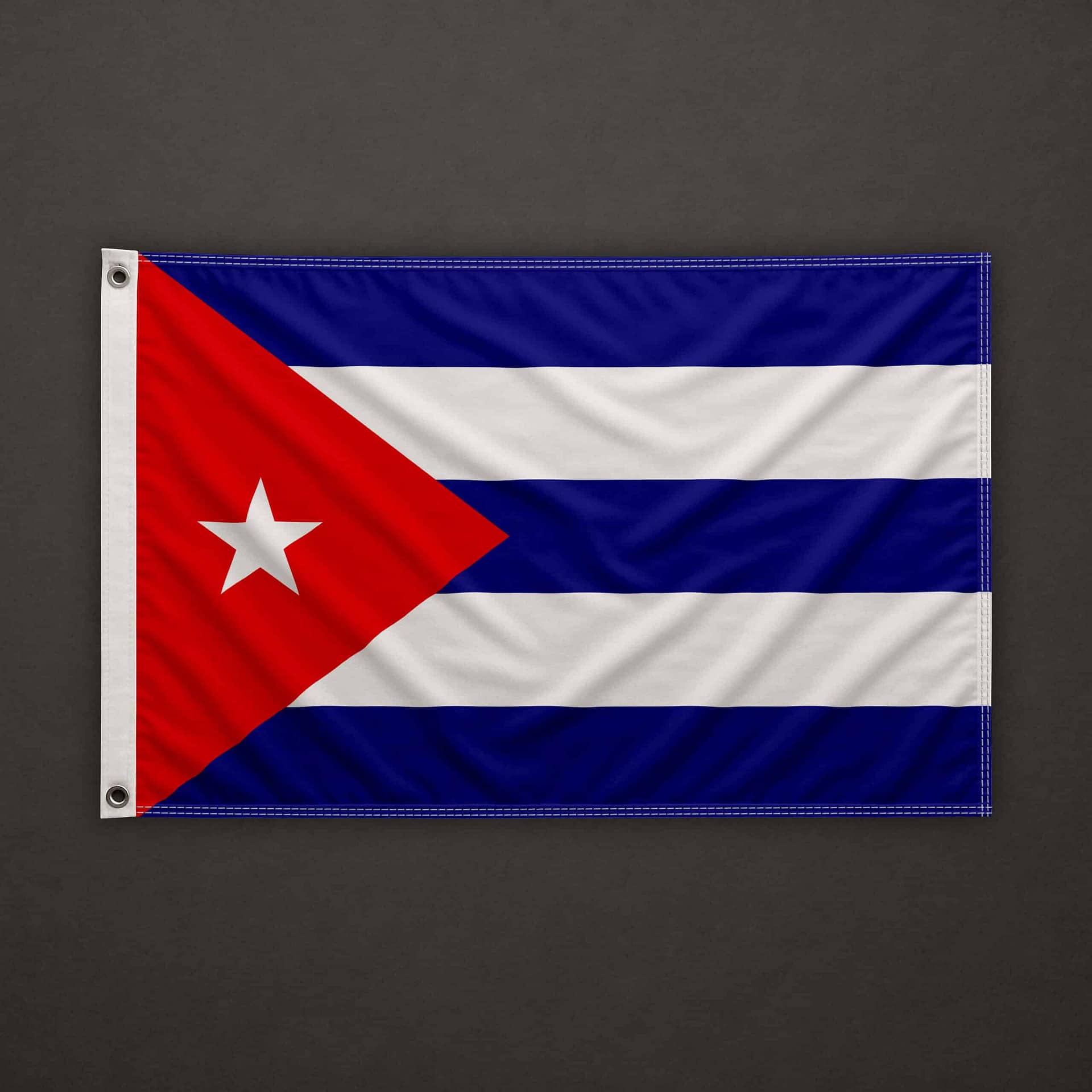 On the left side (hoist edge), a pocket for 6mm stick, open at the top and at the bottom. The top, bottom, and right sides are clean cut (hot cut). The flag is equipped with a 6mm stick already installed, 40cm long.
