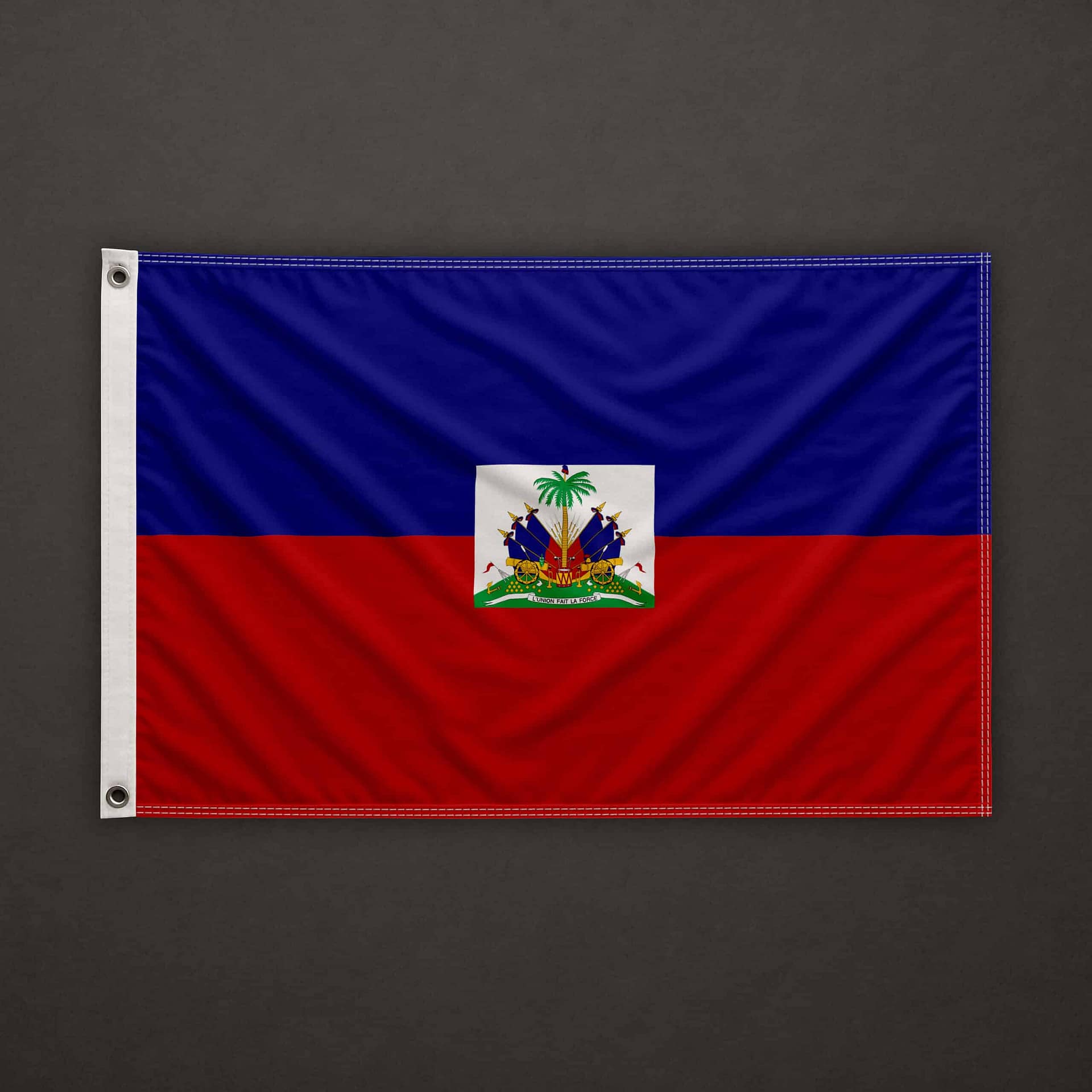 All the sides have double perimeter hems with double stitching.On the left (hoist edge) side two double ribbons are sewn onto the perimeter hem.