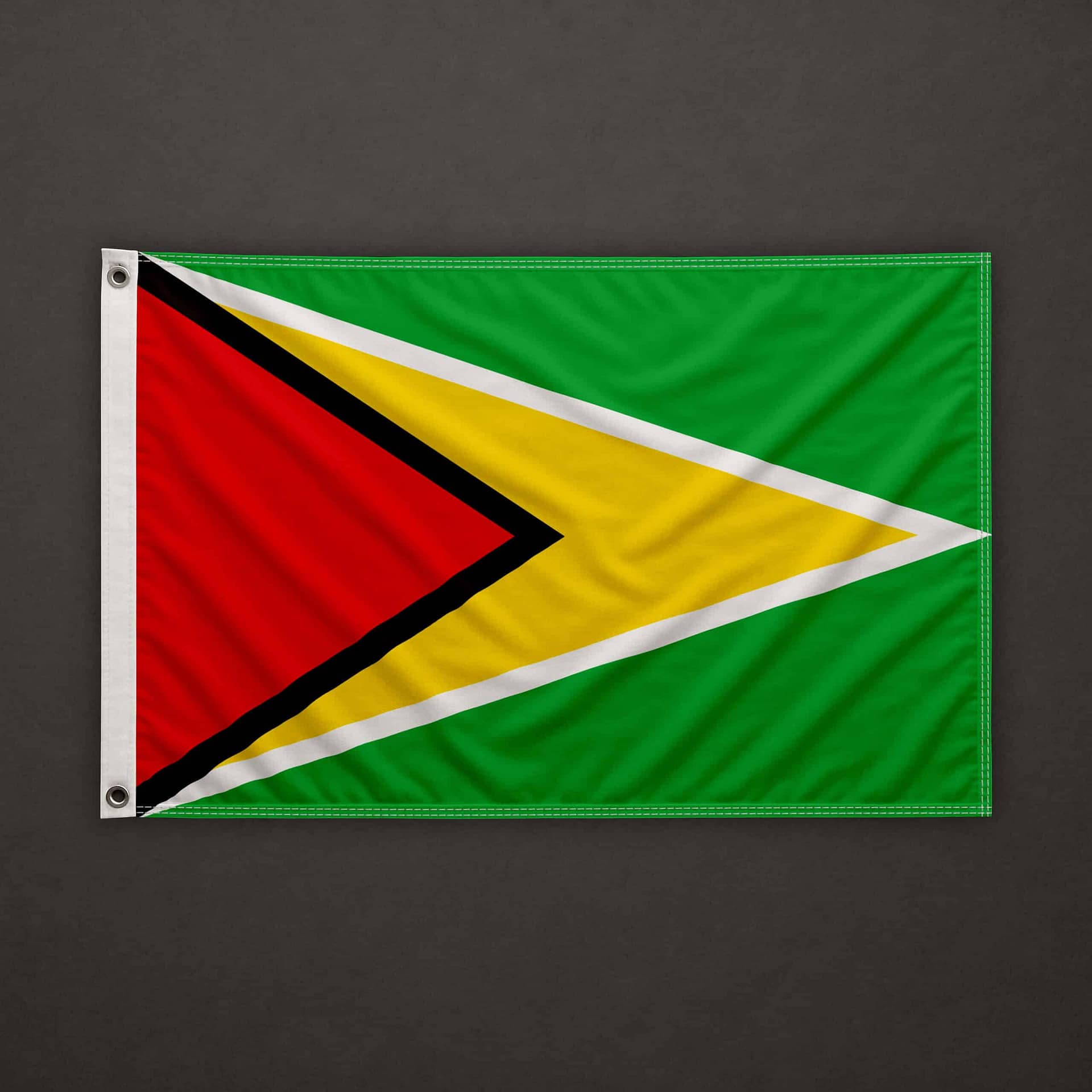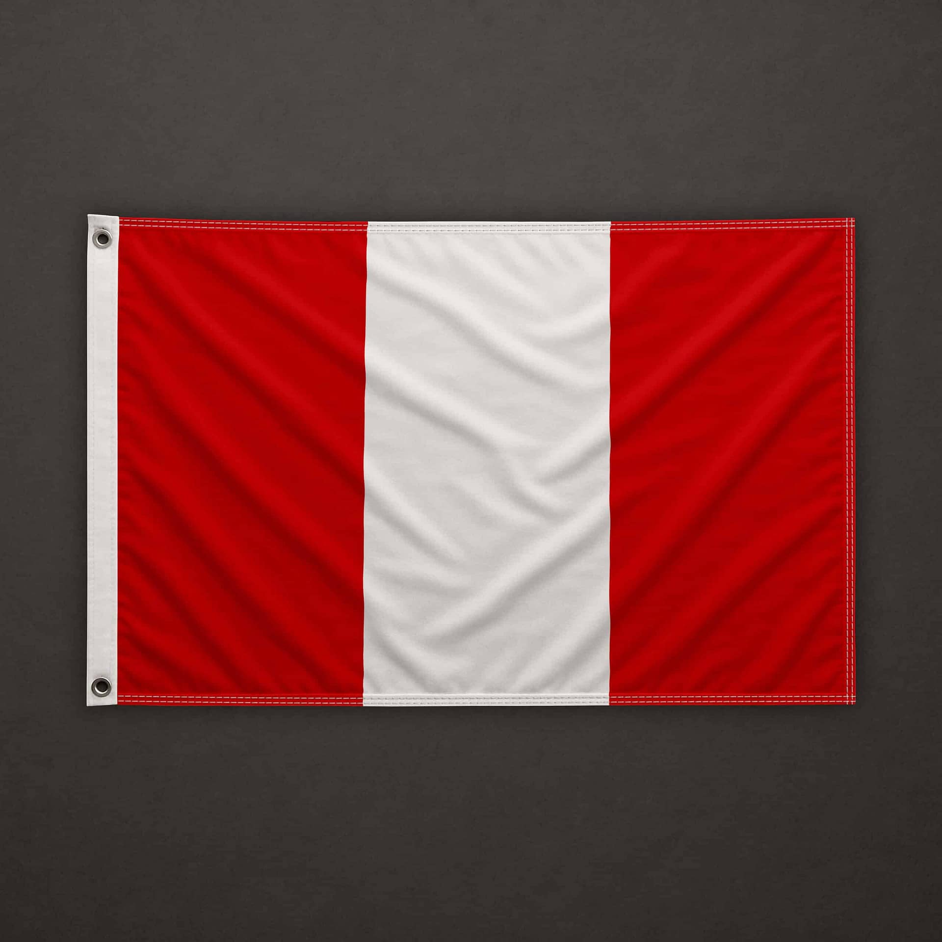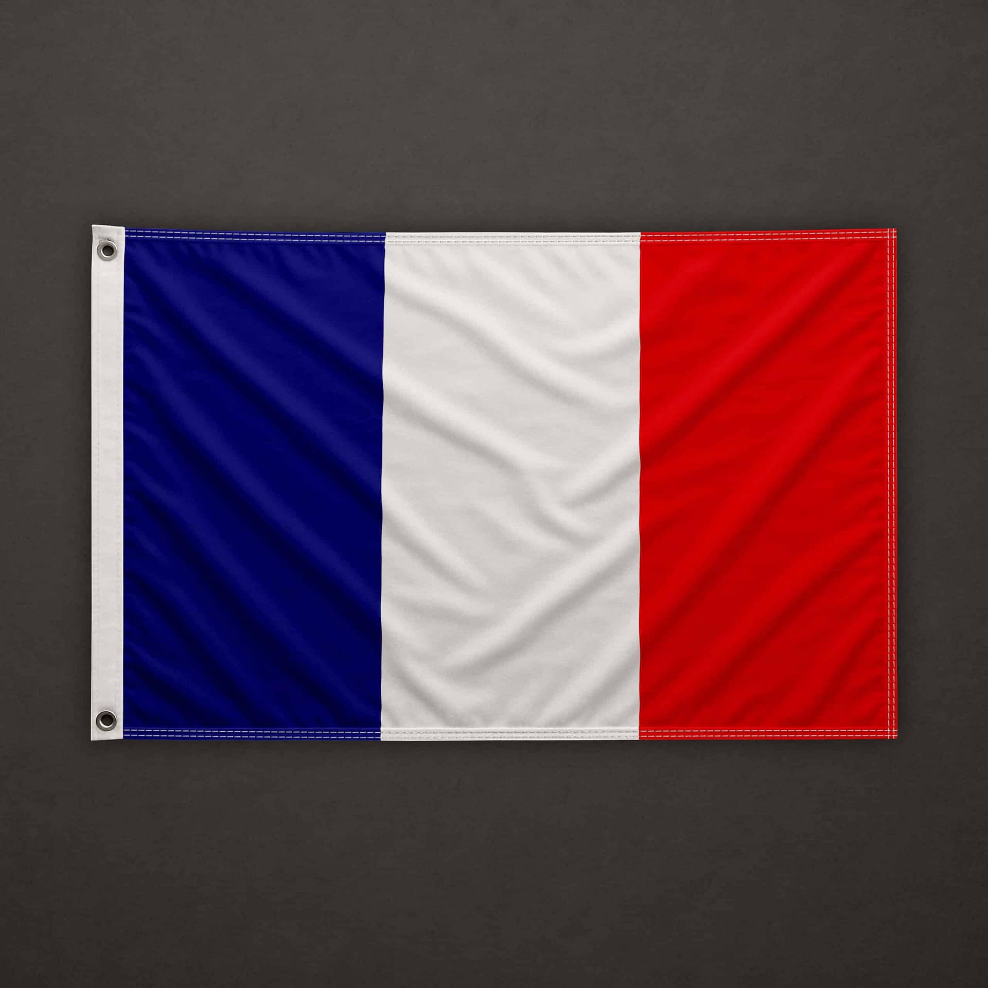 On the left side (hoist edge), a pocket for 6mm stick, open at the top and at the bottom. The top, bottom, and right sides are clean cut (hot cut). The flag is equipped with a 6mm stick already installed, 40cm long.