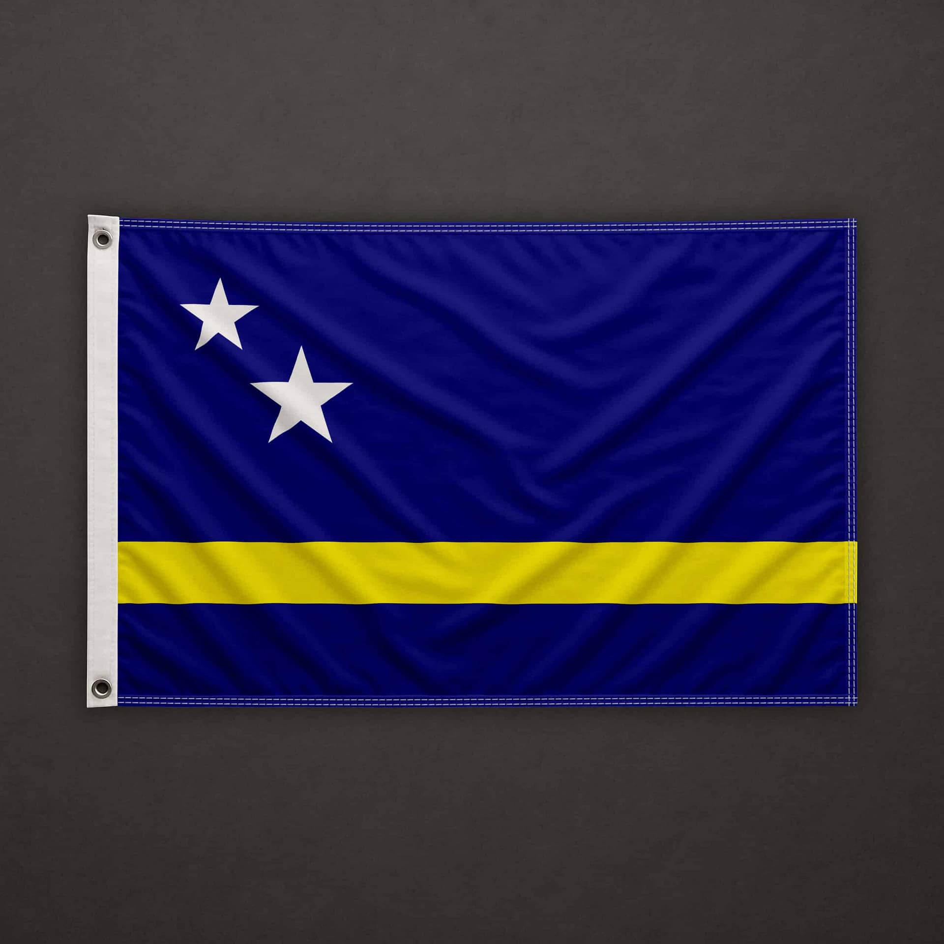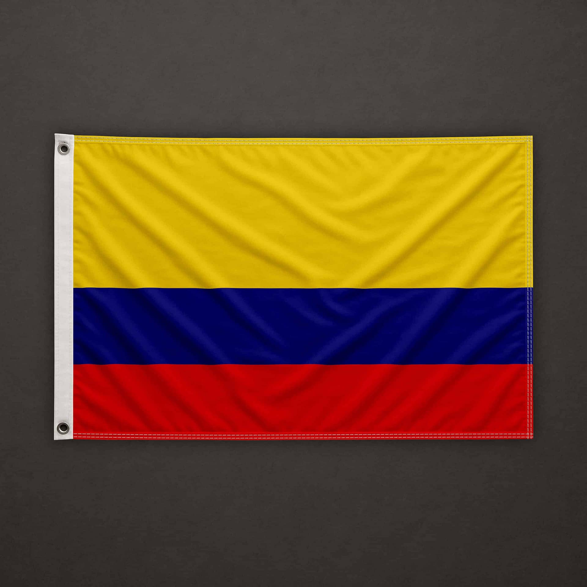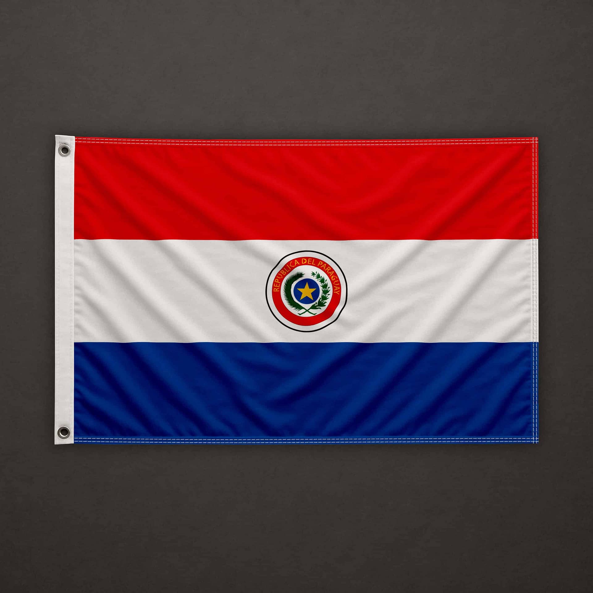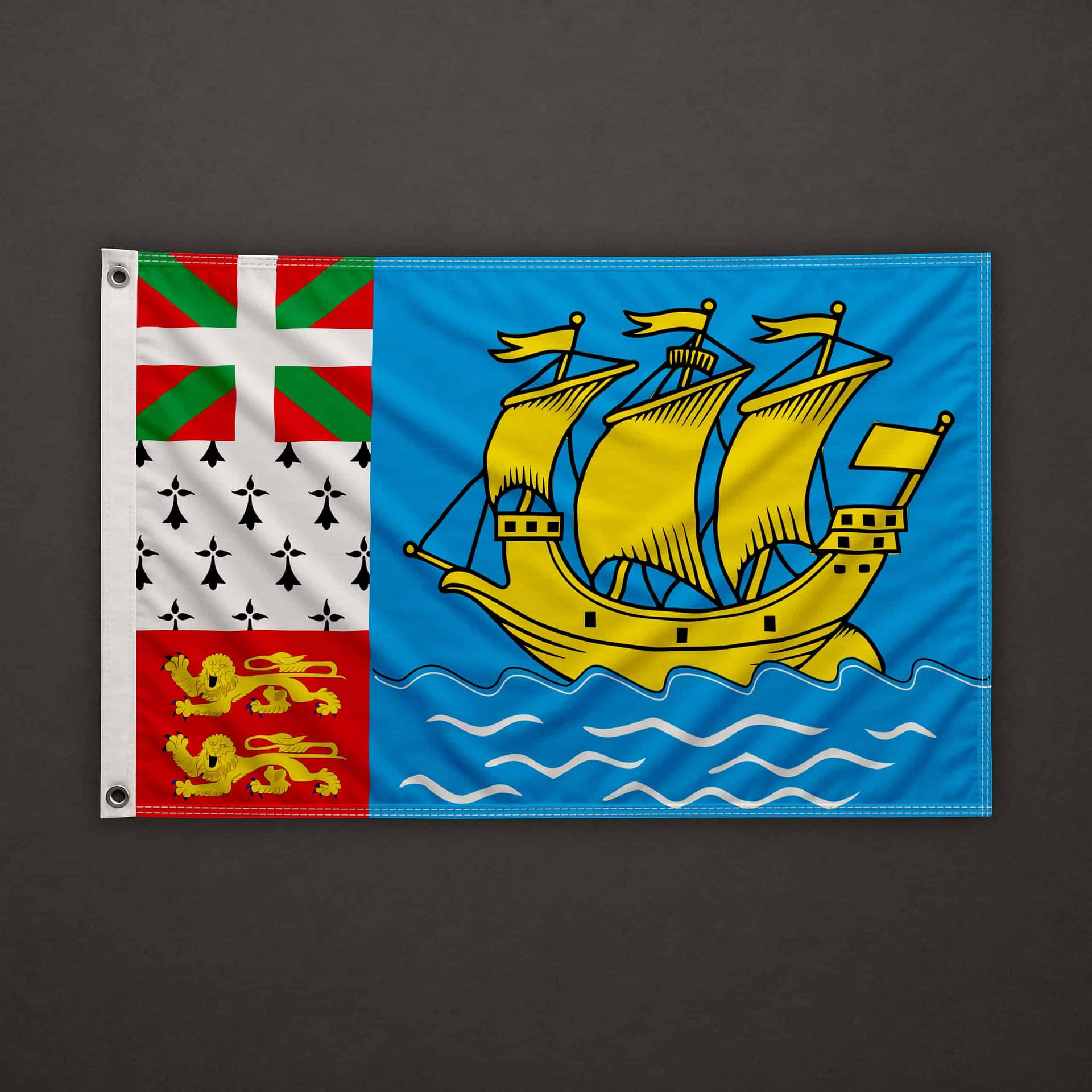 On the left side (hoist edge), a pocket for 6mm stick, open at the top and at the bottom. The top, bottom, and right sides are clean cut (hot cut). The flag is equipped with a 6mm stick already installed, 40cm long.