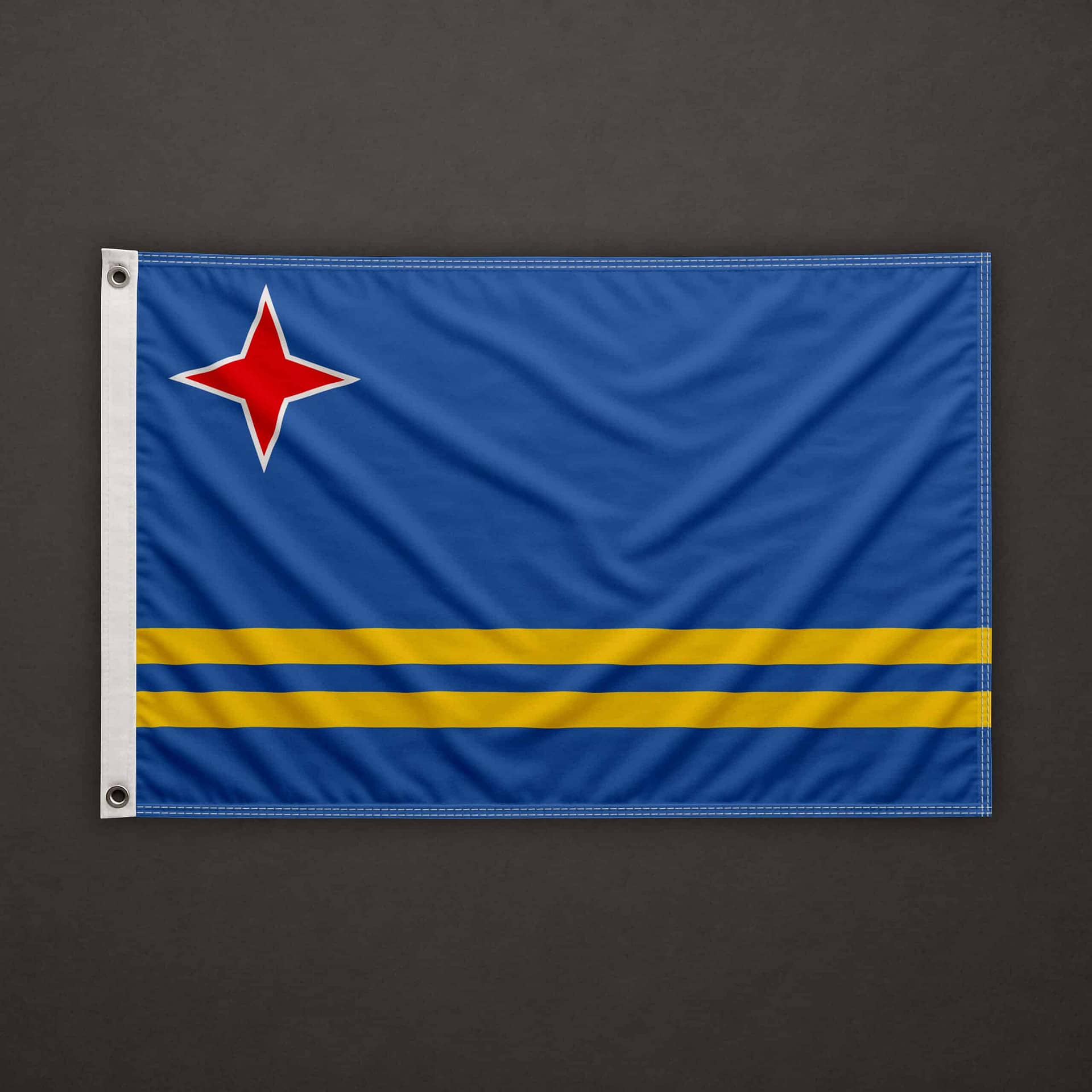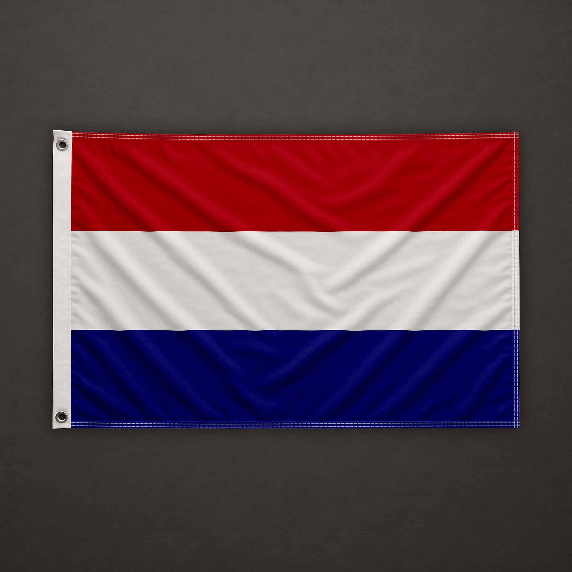 On the left side (hoist edge), a pocket for 6mm stick, open at the top and at the bottom. The top, bottom, and right sides are clean cut (hot cut). The flag is equipped with a 6mm stick already installed, 40cm long.